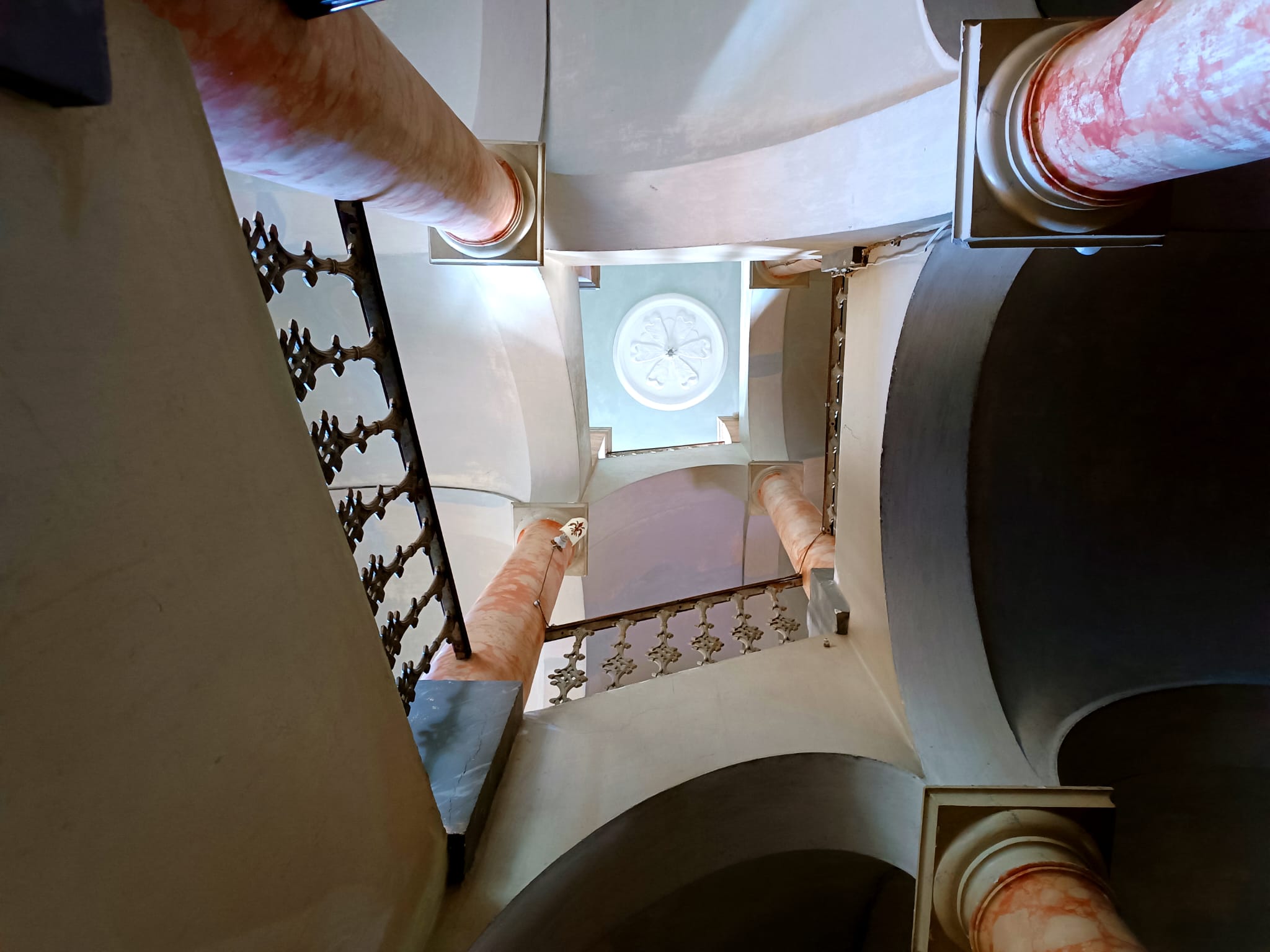 la facciata centrale del piano inferiore in un bel bugnato di terracotta sfumato a colori caldi;